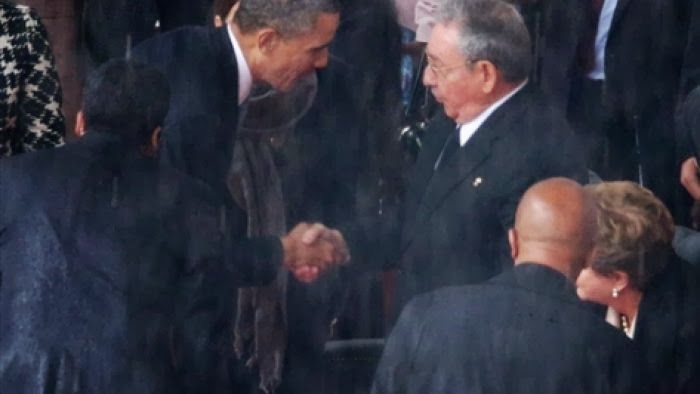 In the course of being directed to his seat Barack Obama came face to face with Cuban President Raul Castro. They shook hands and seemingly exchanged pleasantries. Of course there is much controversy over Raul and the Castros in general. His brother Fidel has been a lightning rod for decades now. He has ruled Cuba with a pretty firm hand since he and his communist guerilla forces ousted Fulgencio Bautista, one of the most corrupt dictators in the history of our hemisphere.